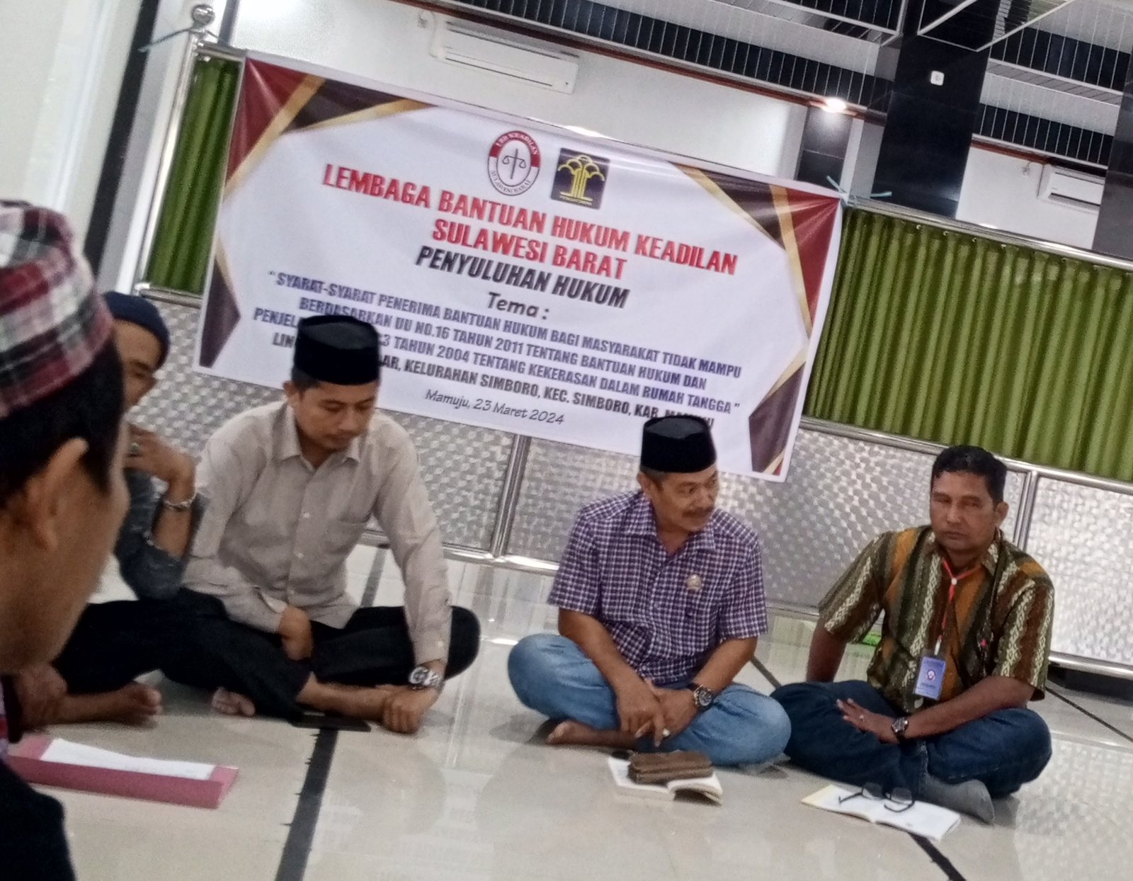Mamuju, Nuansa.info – Andi Toba Direktur LBH (Lembaga Bantuan Hukum) Keadilan Sulawesi Barat Memberikan memberikan Penyuluhan hukum di Kelurahan Simboro kolaborasi dengan Kanwil Kementerian Hukum dan HAM Provinsi Sulawesi Barat di mesjid aqsa tegar 77. 23/03.