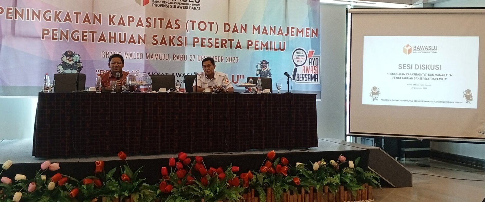 Mamuju, nuansa.info – Bawaslu Provinsi Sulawesi Barat mengadakan kegiatan “Penguatan Kapasitas (ToT) dan Manajemen Pengetahuan Saksi Peserta Pemilu yang dilaksanakan di Grand Maleo Hotel and Convention, JI.Yos Sudarso No. 51 Mamuju Sulawesi Barat 91511Rabu 27/12/2022