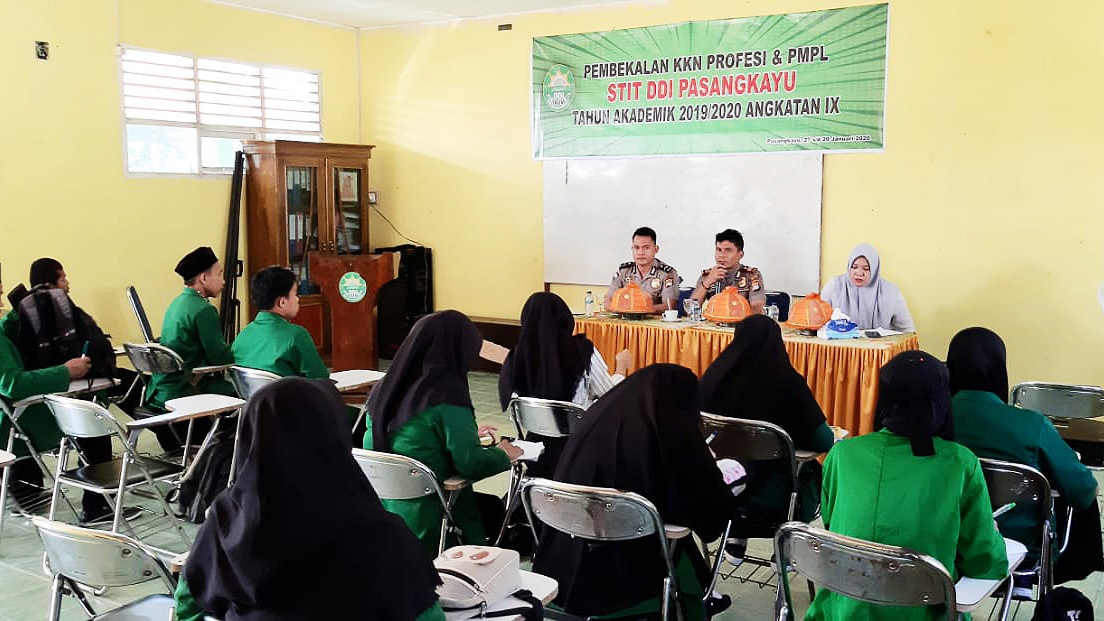 PASANGKAYU, NUANSAINFO.COM — Kasat Binmas Polres Mamuju Utara, AKP Sukaryono didapuk jadi pembicara saat pembekalan mahasiswa KKN Sekolah Tinggi Ilmu Tarbiyah (STIT) DDI Pasangkayu, Selasa (28/1/2020).