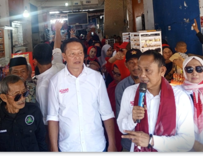 “Sukses selalu ADAMI. Saya coblos nomor dua,” kata pedagang sembari mengacungkan dua jari dan mengajak Ado Mas’ud dan H. Damris berfoto ”