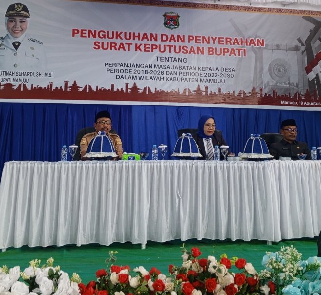 Dalam pengukuhan ini, Bupati Sutinah menyerahkan surat keputusan perpanjangan masa jabatan untuk satu kepala desa periode 2018-2026 dan 49 kepala desa untuk periode 2022-2030. Hadir pula dalam acara tersebut Anggota DPR RI, Dr. H. Suhardi Duka, yang turut memberikan dukungan.