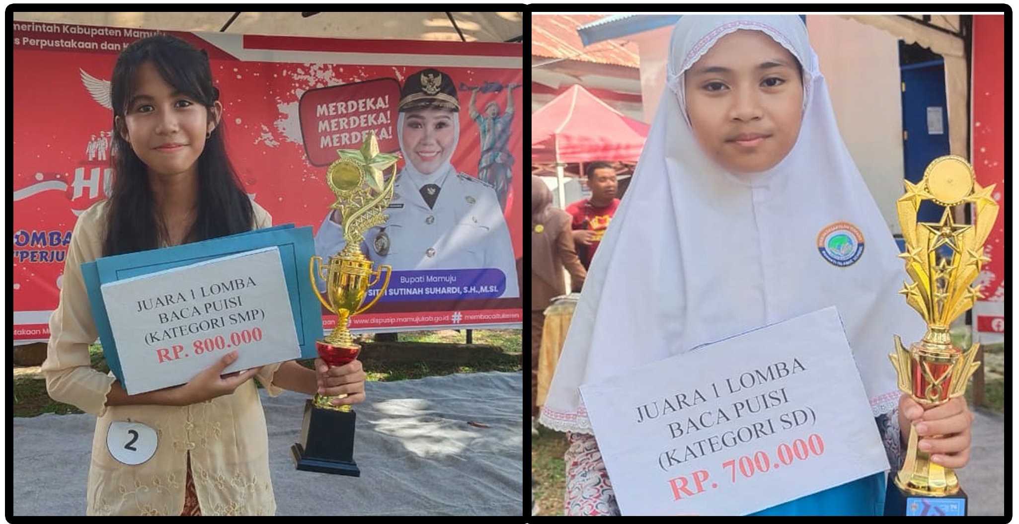 Hal sama pun juga diraih oleh Regita Akwila Wallang, yang merupakan siswa kelas IX SMPN 2 Mamuju yang menjadi juara 1 lomba baca puisi kemerdekaan yang berlangsung di halaman Perpustakaan Kabupaten Mamuju, Selasa (22/8).