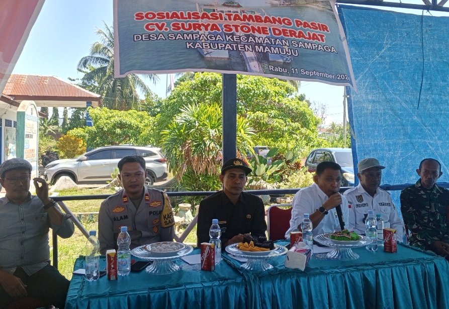 Mamuju, nuansa.info – Sosialisasi Tambang Pasir yang dilaksanakan CV. Surya Stone yang di Aula kecamatan Sampaga desa bunde di hadiri kepala bidang mineral dan batubara ESDM provinsi Sulawesi Barat Ilham camat Sampaga Polsek sampaga Koramil Sampaga, Kepala desa Sampaga, anggota BPD desa sampaga tokoh masyarakat sekertaris desa, Para kepala dusun Sampaga dan sejumlah masyarakat Sampaga 11/9/2024.