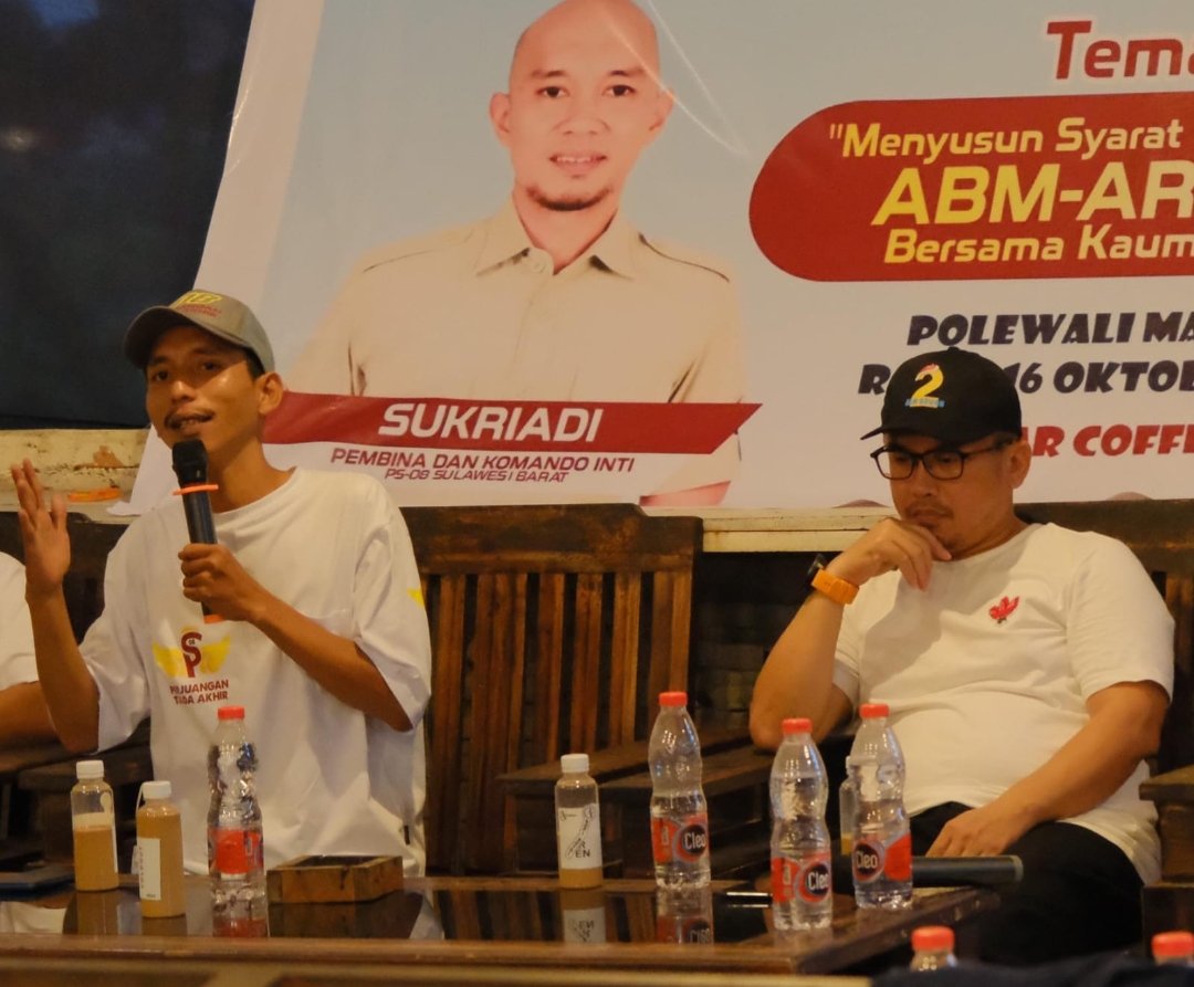 Ketua panitia PS-08 Polewali mandar, Kris Al-Gifari, menyampaikan bahwa kegiatan ini merupakan sharing pengalaman serta menyusun strategi kemenangan ABM Arwan, walaupun hujan tentu tak mengendorkan semangat seorang pemuda untuk berkumpul dan berdiskusi.
