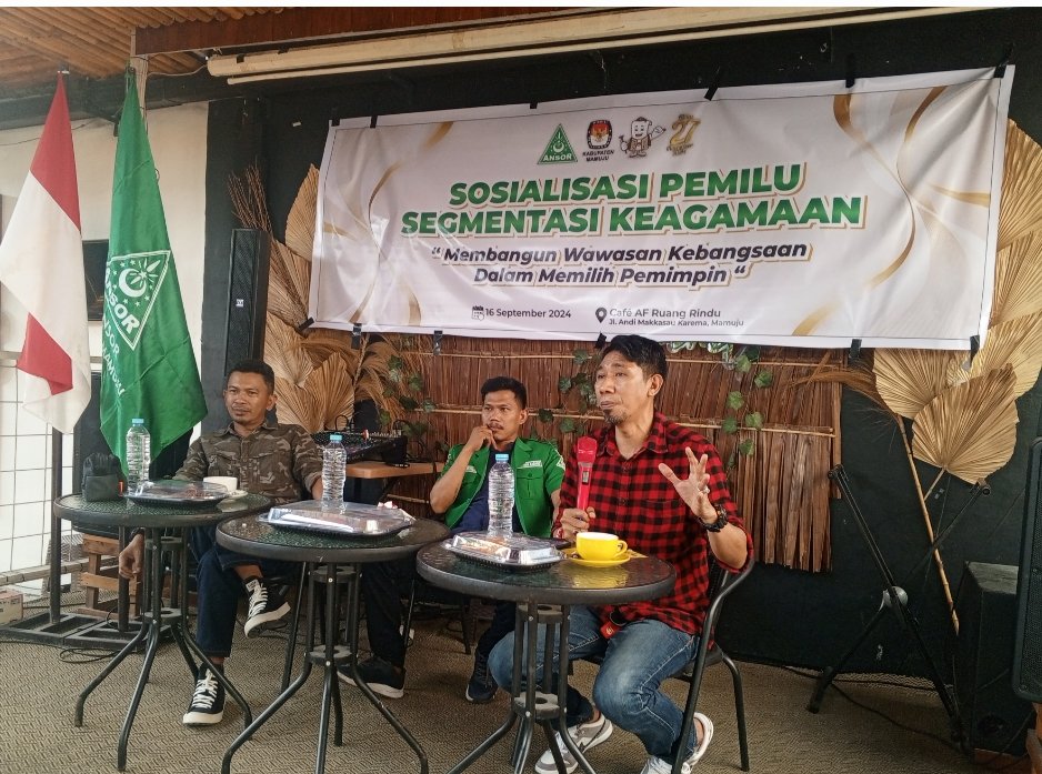 Gerakan Pemuda (GP) Ansor Mamuju Melaksanakan Sosialisasi Pemilu Segmentasi Keagamaan dengan tema “membangun Wawasan Kebangsaan dalam memilih pemimpin” yang dilaksanakan di ruang rindu 16/9/2024