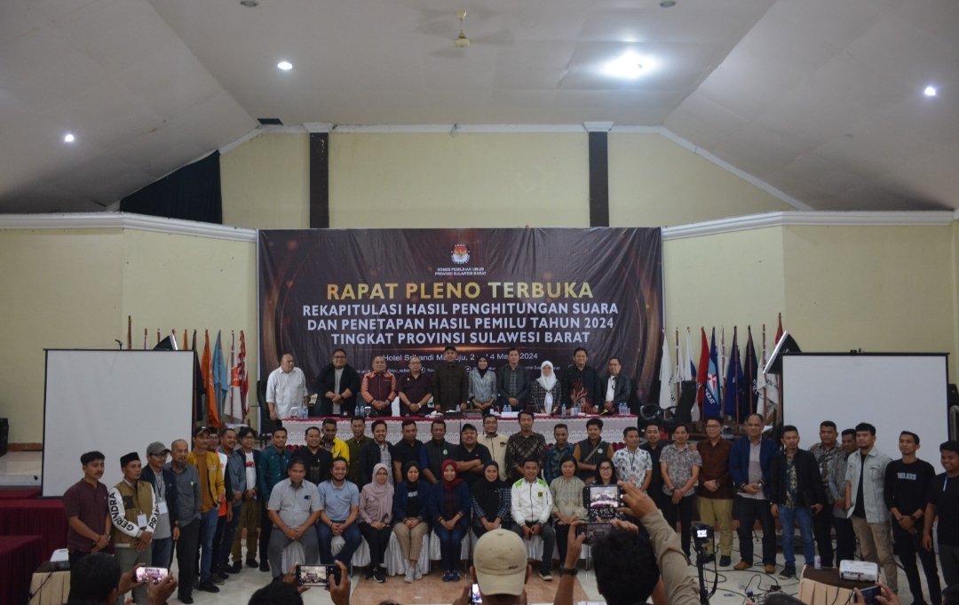Mamuju, KPU Sulbar — Komisi Pemilihan Umum (KPU) Provinsi Sulawesi Barat selesai melaksanakan rekapitulasi hasil penghitungan suara dan penetapan hasil Pemilu Tahun 2024 tingkat provinsi Sulawesi Barat. Rekap yang digelar di Hotel Srikandi dan Wisma Malaqbi berlangsung selama delapan hari, dimulai di tanggal 2 sampai 9 Maret 2024.
