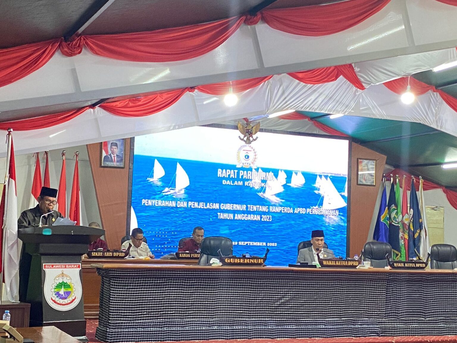 Mamuju, Nuansa-info – Dewan Perwakilan Rakyat Daerah Sulawesi Barat menggelar rapat Paripurna terkait Jawaban Gubernur Sulawesi Barat Terhadap Pemandangan Umum Fraksi-Fraksi DPRD Provinsi Sulawesi Barat atas Pengantar Nota Keuangan Ranperda tentang perubahan APBD Tahun Anggaran 2023, dilakasanakan di ruang Paripurna Sekretariat DPRD Provinsi Sulawesi Barat. Jum’at 29 September 2023