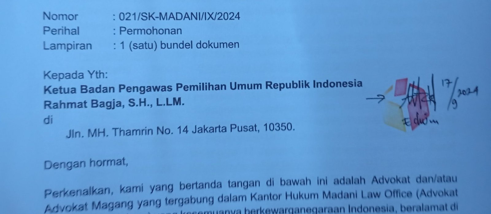 Jakarta, nuansa.info – Praktisi Hukum Mulya Sarmono mengadukan Perusahaan Umum Daerah (Perumda) Aneka Usaha (AU) Kabupaten Majene ke Badan Pengawas Pemilu Republik Indonesia (Bawaslu RI), Selasa, 17 September 2024. Hal itu dilakukan agar Penyelenggara Pemilu memberikan pengawasan terhadap Perumda AU Majene menjelang Pemilihan Kepala Daerah (Pilkada).