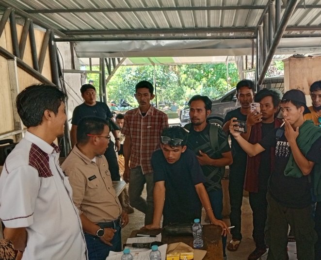 ” Ratusan masyarakat menolak masyarakat masuknya tambang, jelas ini tindakan sepihak dan upaya pemaksaan pihak perusahaan.” Ujar resky