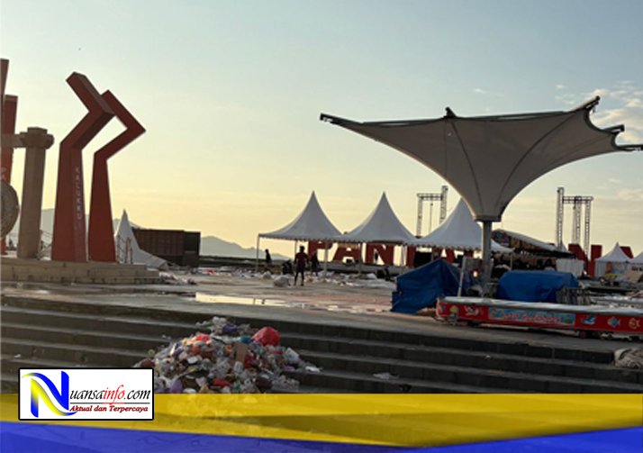 Mamuju, Nuansainfo.com – Anjungan pantai Manakkara yang menjadi  lokasi kegiaiatan Gema Sulbar hiburan megah bagi masyarakat Mamuju, Jadi tempat pembuangan sampah hal ini di Sampaikan Supriadi di salah satu warkop di Mamuju 24/9/2025.
