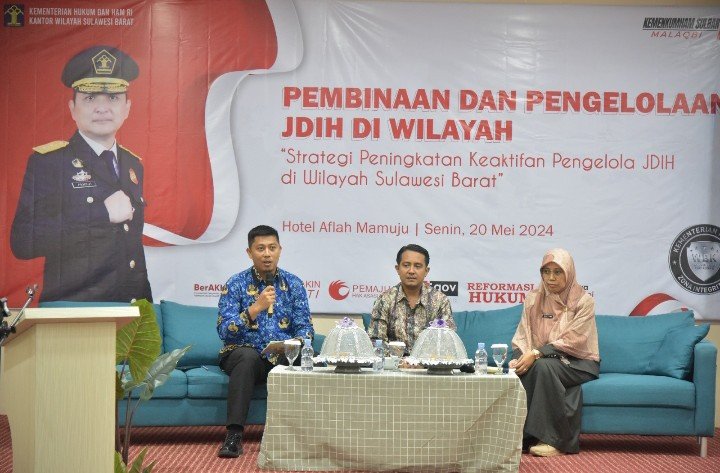 Dalam sambutannya, Kepala bidang pelayanan hukum Kantor Wilayah Kementerian Hukum dan HAM Sulawesi Barat, Wardi menekankan pentingnya JDIH sebagai sarana untuk menyediakan informasi hukum yang mudah diakses oleh masyarakat.