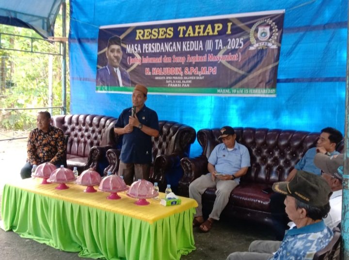 Mamuju, nuansa.info– Guna menampung aspirasi warga, Anggota DPRD Provinsi Sulawesi Barat (Sulbar), H.Haluddin, S.Pd, M.Pd menggelar reses pada empat titik, di Kabupaten Majene, Sulbar yang dimulai 11 hingga 15 Februari 2025.